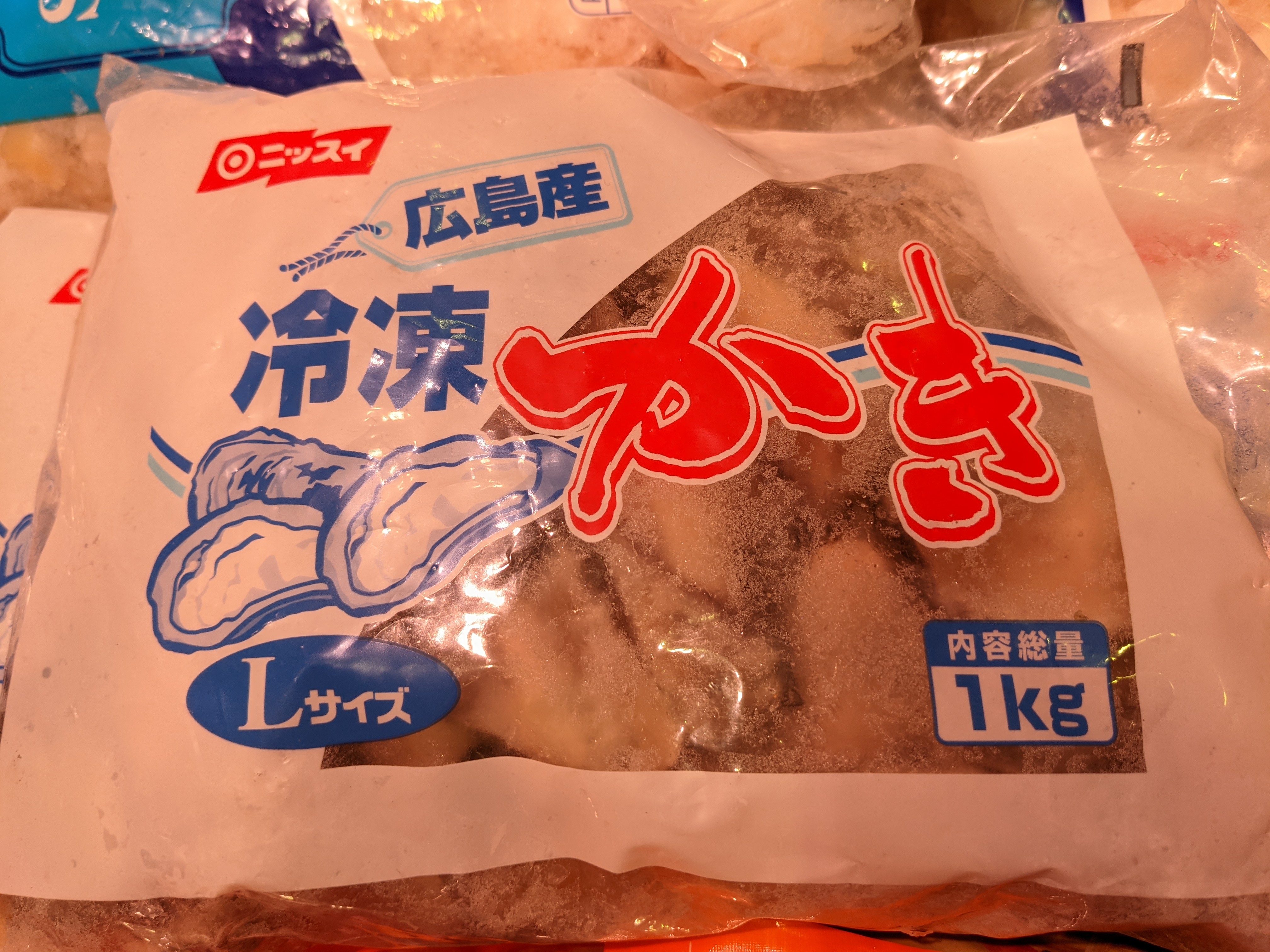 コストコセールただいま開催中です!鮮魚コーナーでは新商品として冷凍むきカキを販売中です!でっかいカキがゴロゴロ入ってますよ、是非ご利用くださいませ