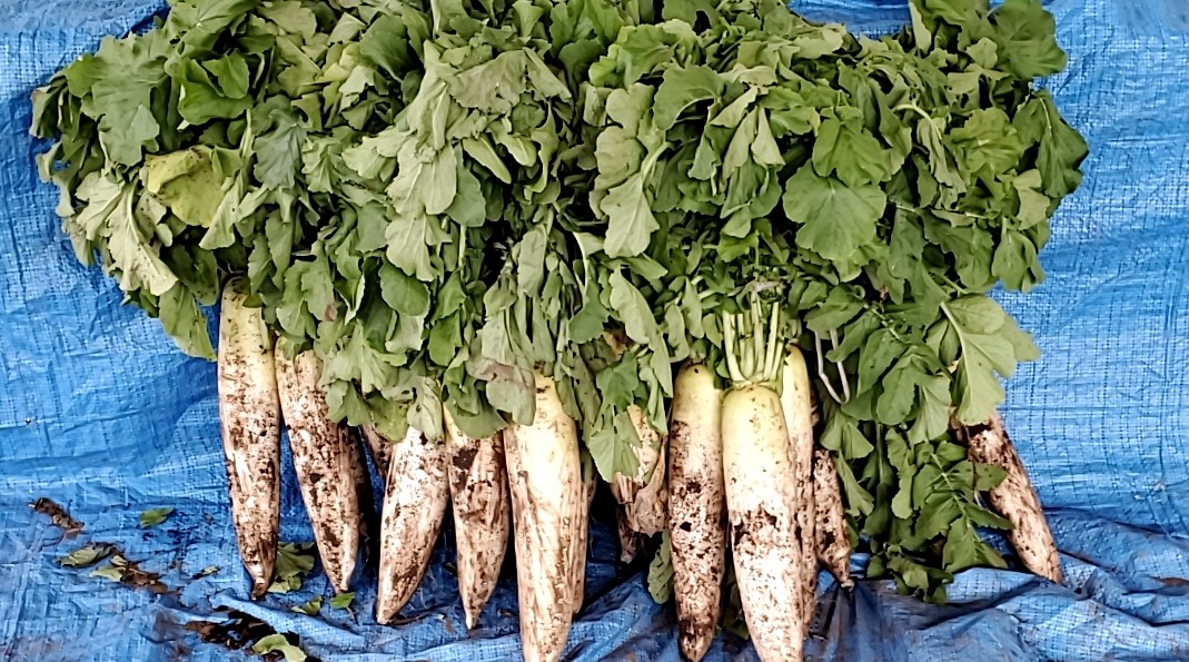 今日、土つき大根を販売いたします。その他、土ねぎ、土人参、土ごぼうなど越冬野菜を大量販売いたします。ぜひ、ご利用お待ちしております。(^-^)✌️