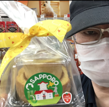 訪問先のワンちゃんに手土産はいかがですか?このタワーケーキはいちごクリーム味とチーズクリーム味の2種類あり、アラザンとパウダーシュガーのデコレーション付きです。登場以来めっちゃ売れてます。とってもオススメです。
