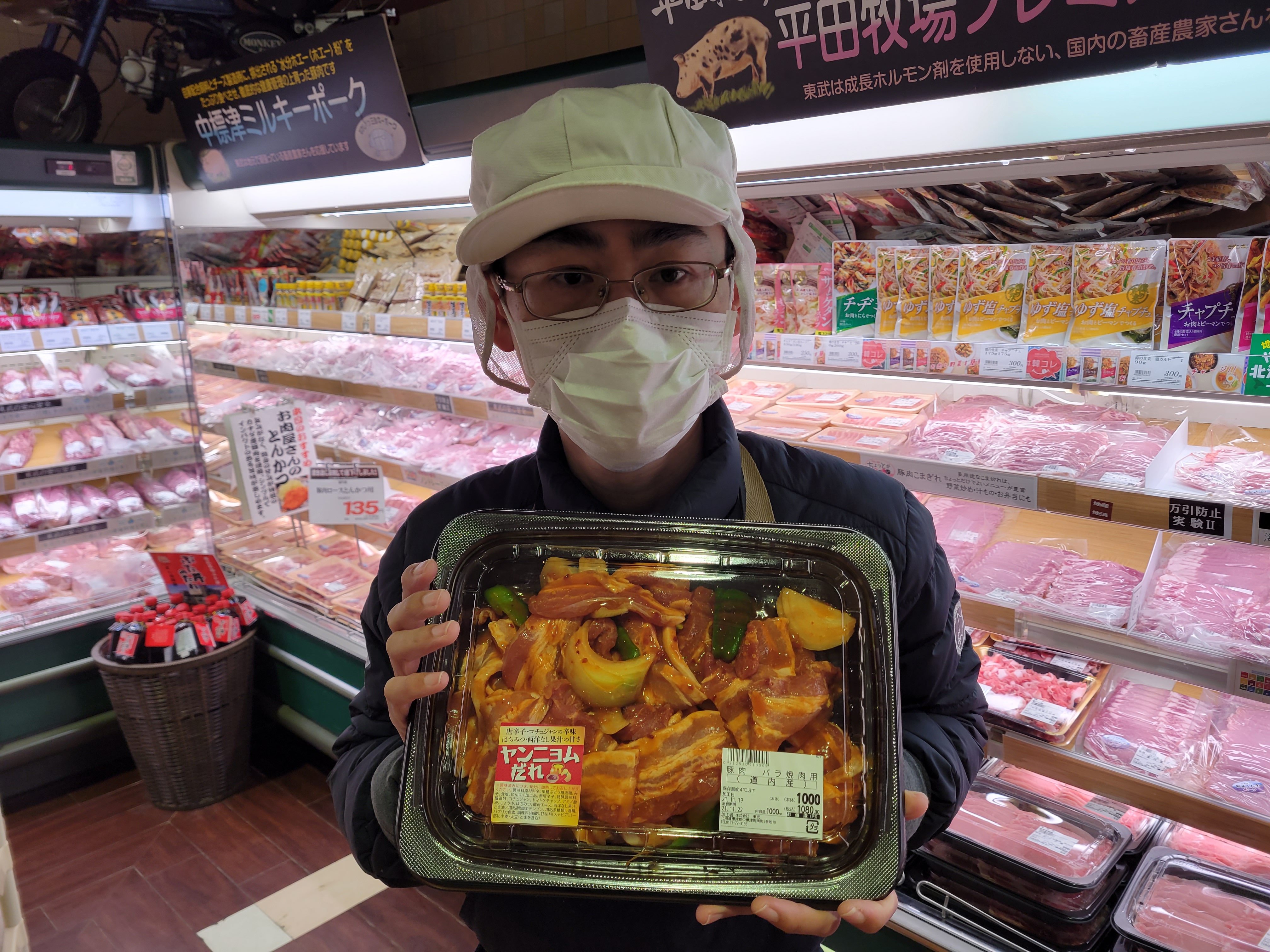 本日ミート担当、小平さんのイチオシコストコ風ヤンニョム焼肉がおすすめです唐辛子、コチュジャンの辛味はちみつ、西洋なし果実の甘さが人気1パック1kg入り1000円で販売中ご利用下さいね😄
