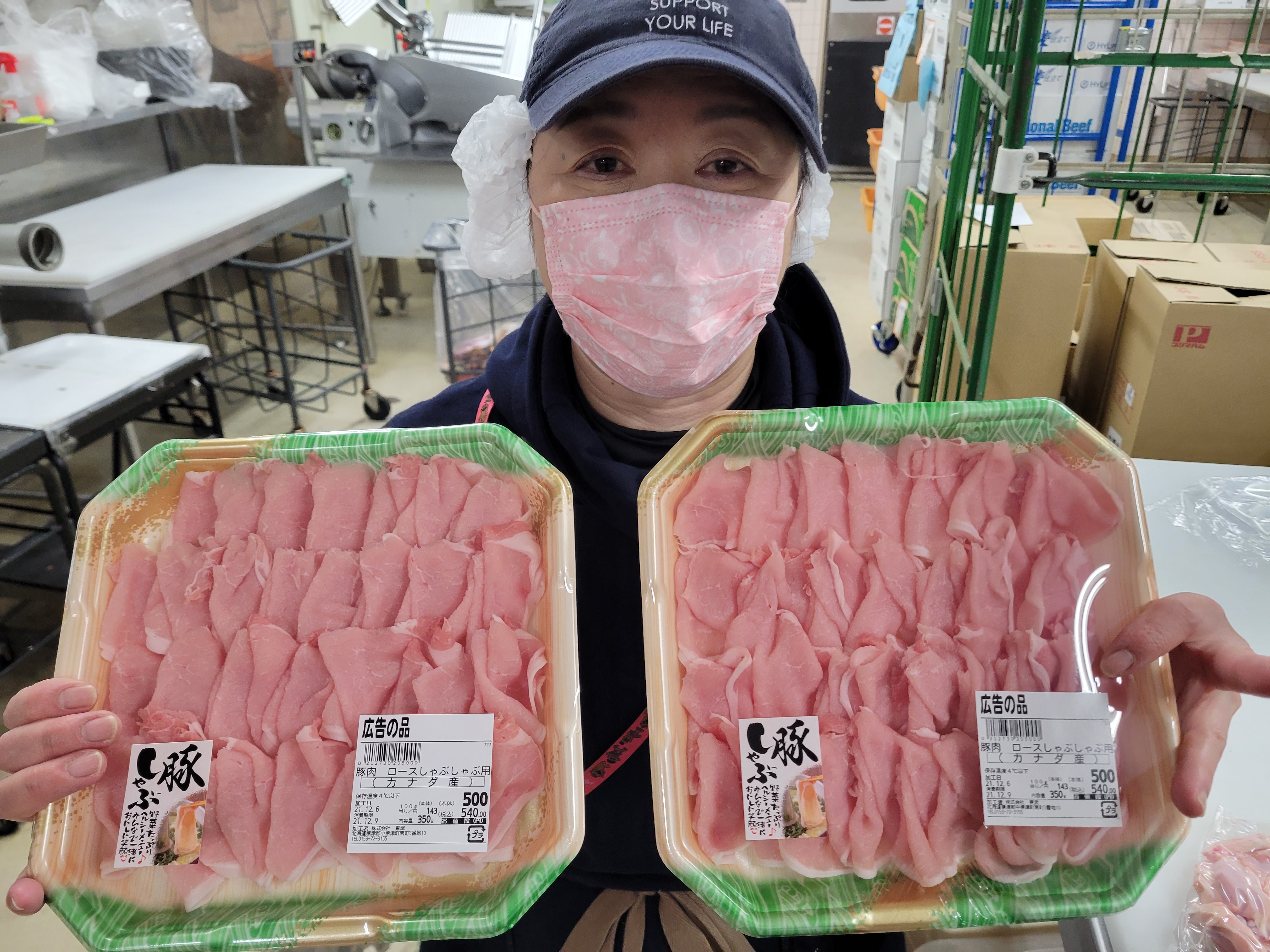 本日ミート担当、宮崎さんのイチオシ豚肉ロースしゃぶしゃぶがおすすめ野菜たっぷり、ヘルシーメニューしゃぶしゃぶが均一特価の350g500円で販売中ご利用下さいね😄
