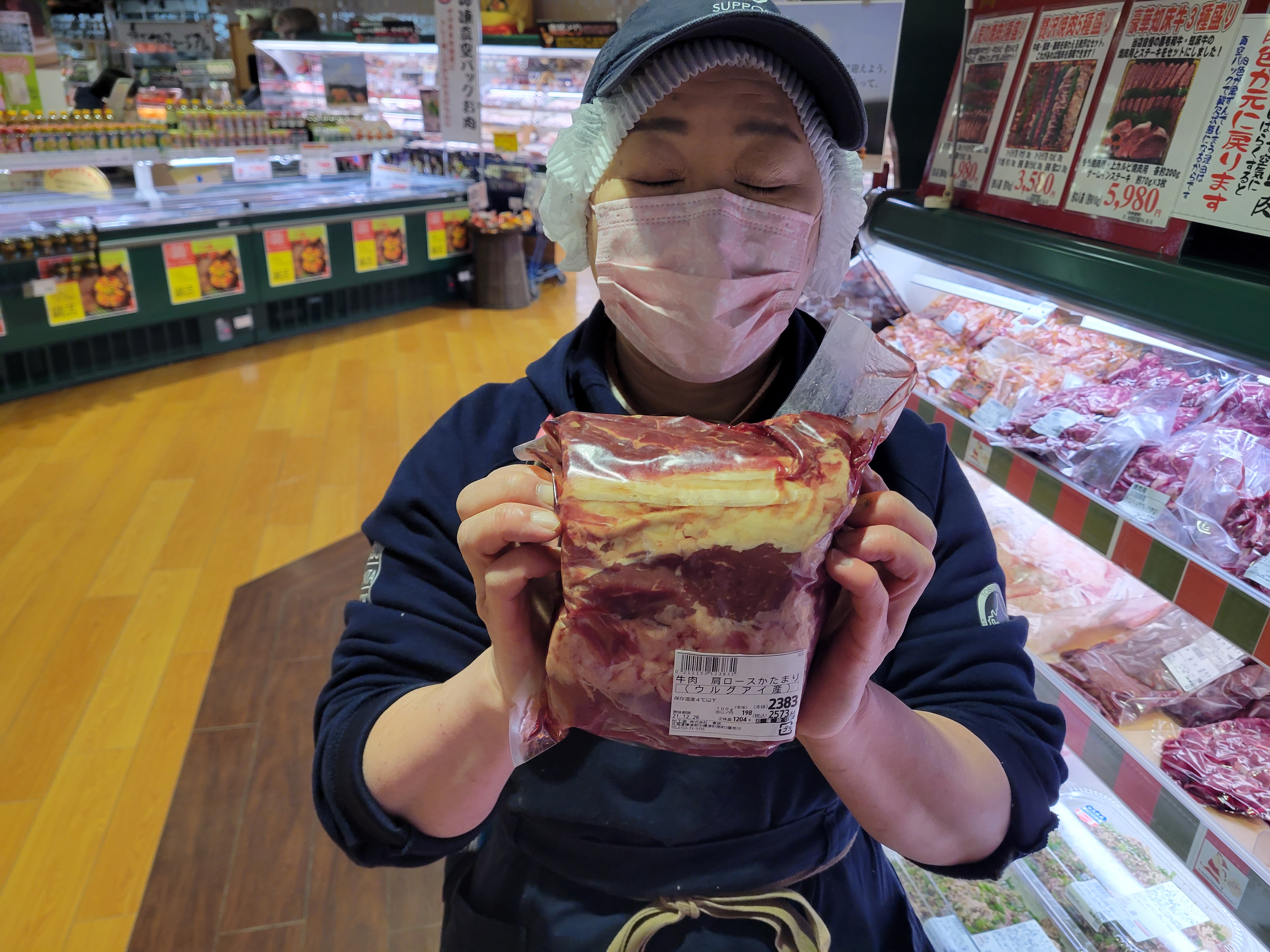 本日ミート担当、宮崎さんのおすすめローストビーフ用ブロック肉がイチオシです🎵脂身の少ないリブロースでローストビーフに最適今週いっぱい100g当たり198円で販売中、ご利用下さいね