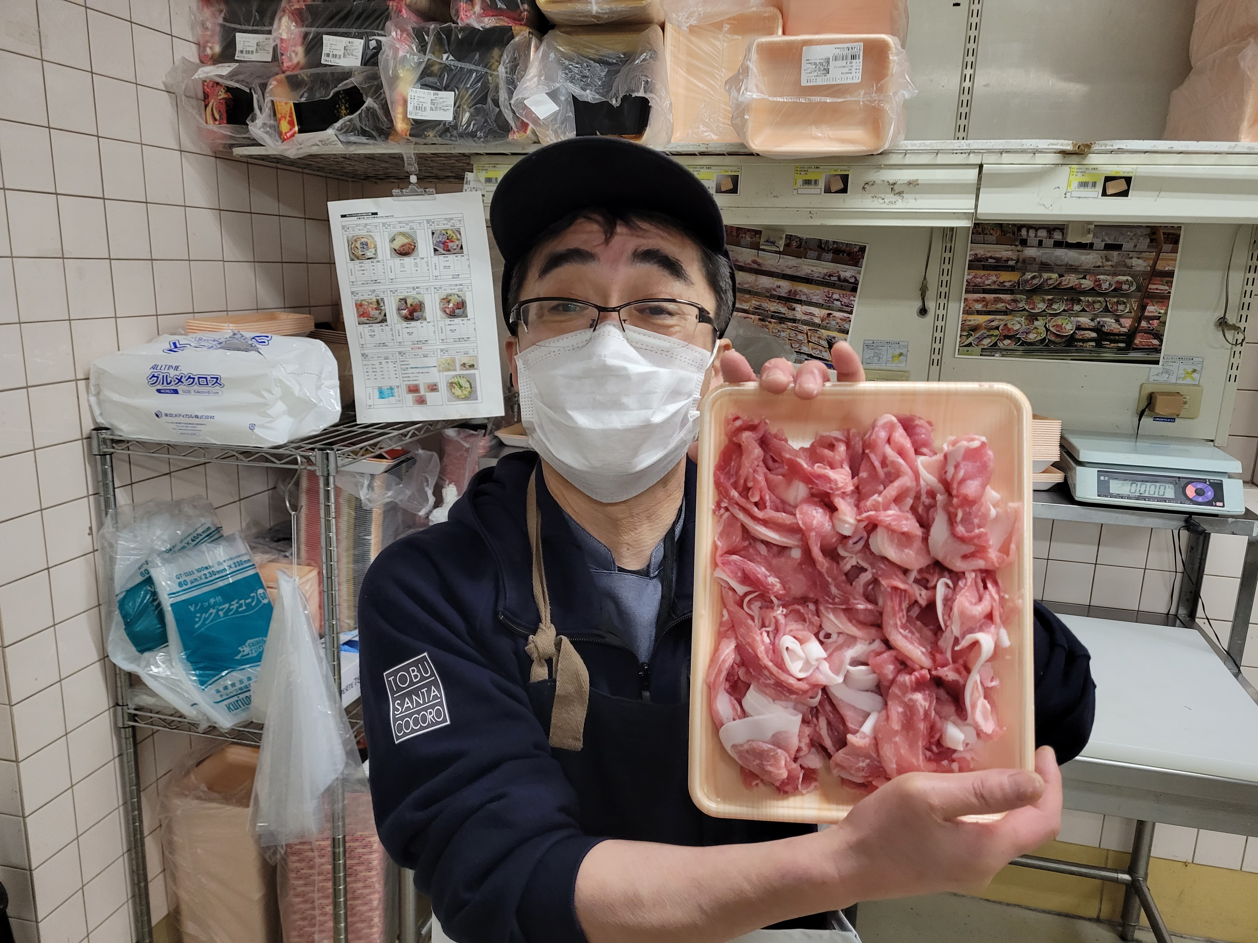 本日ミート担当、原さんのおすすめ豚肉もも切り落としがイチオシ只今地域一番最安値に挑戦中炒め物、焼きそば、カレー、生姜焼きなど料理用途が豊富100g当たり79円にて販売中ご利用下さいね🎵