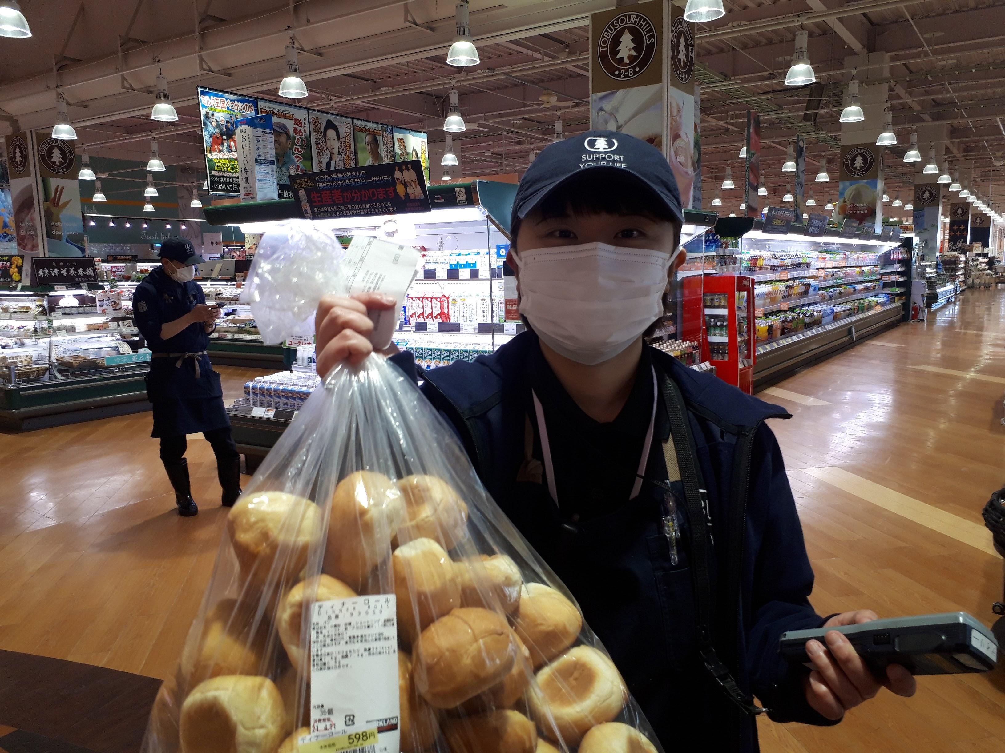 おはようございます。日配コーナーでは、コストコフェア開催。ディナーロールやティラミス、チーズタルトなど入荷しました。週末だけの開催です。ぜひお買い求め下さい。