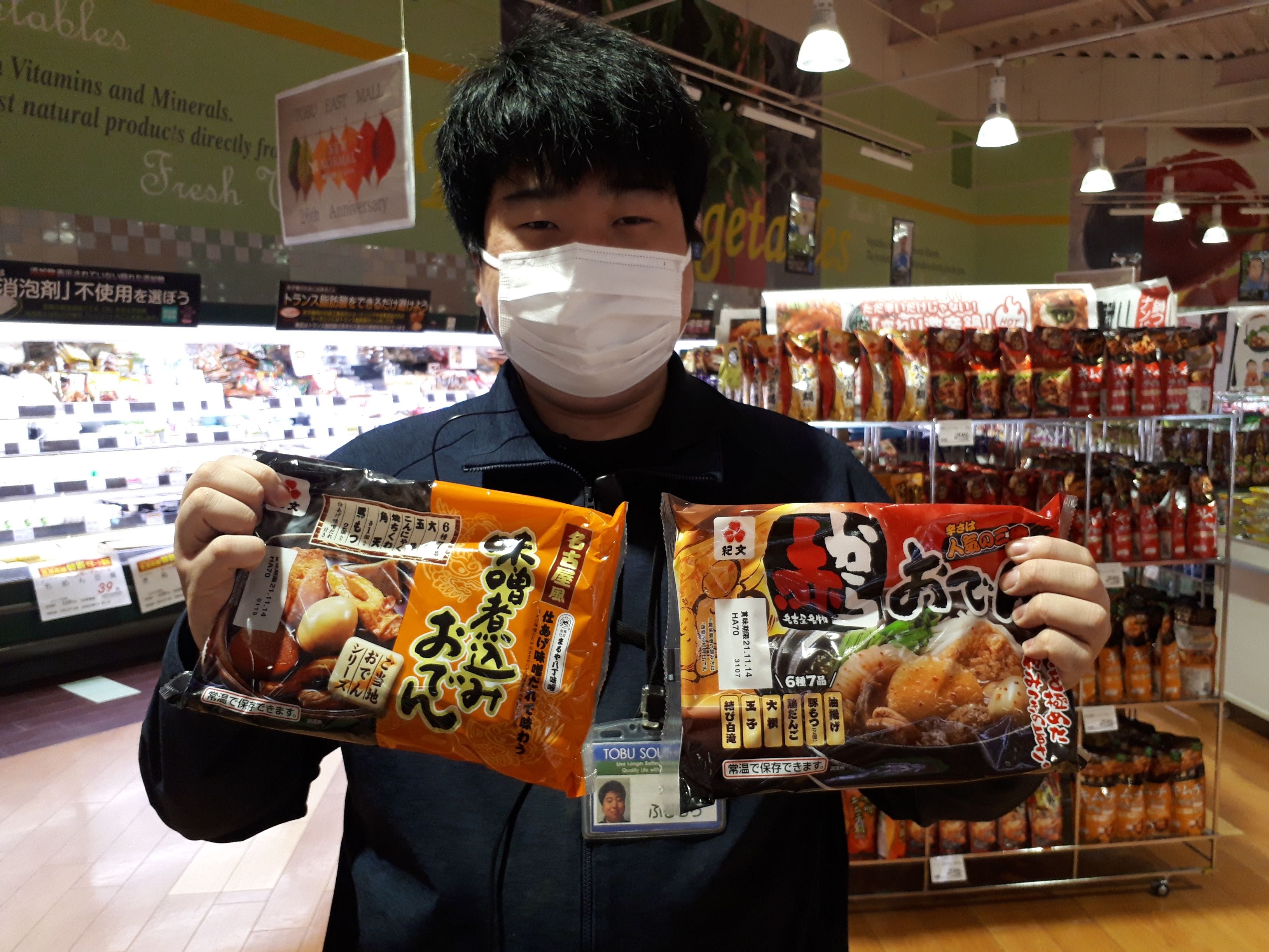 おはようございます。日配コーナーでは、全国のご当地おでんを販売しています。北海道おでんや静岡、味噌煮込みおでんなどをご用意しております。温めるだけの簡単調理、で手軽に食べられるので、便利です。ぜひお買い求め下さい。