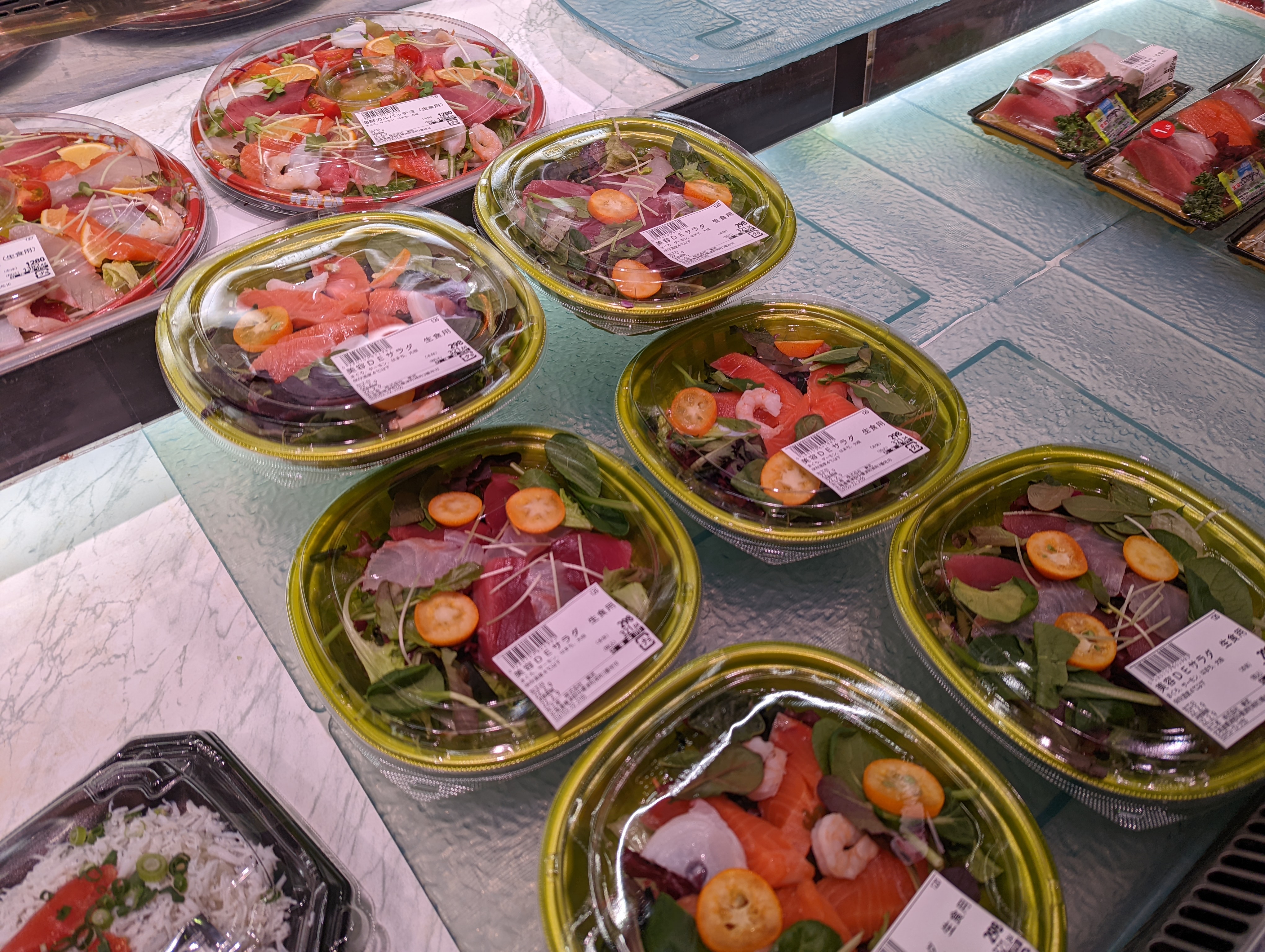 鮮魚コーナーでは海鮮サラダを販売中!是非ご利用くださいませ!