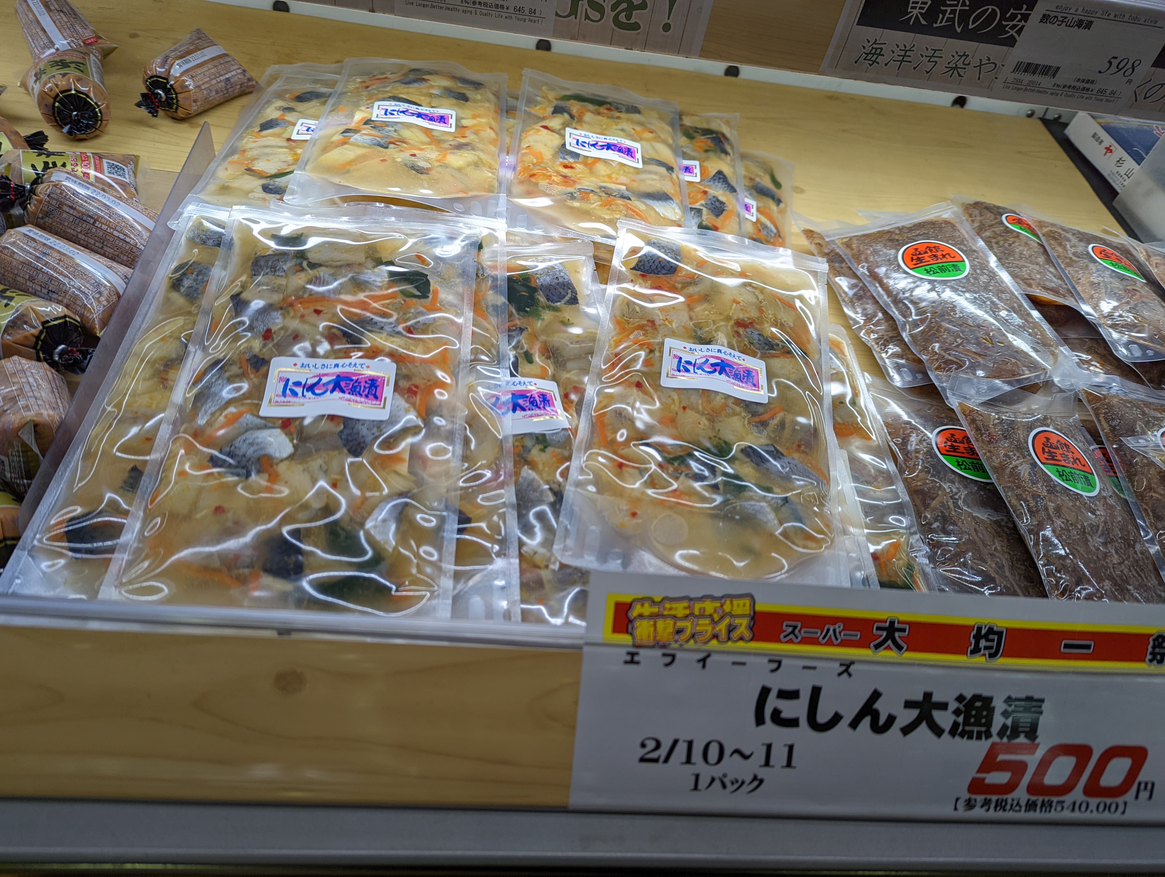 本日500円均一といたしましてにしん大漁漬がお買い特!是非ご利用くださいませ