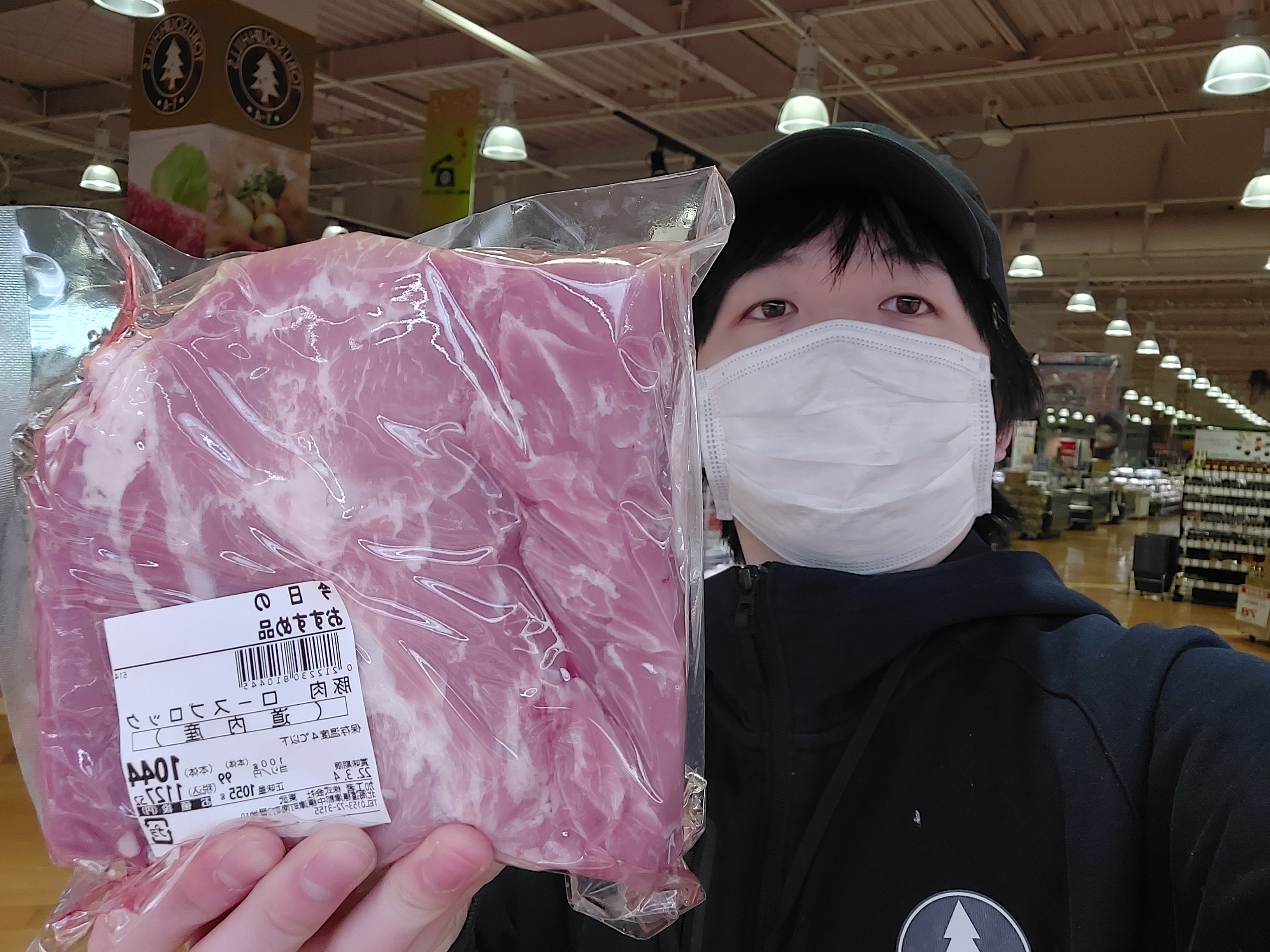 おはようございます 本日のおすすめは道内産の豚肉ロースブロックです 100g当たり99円