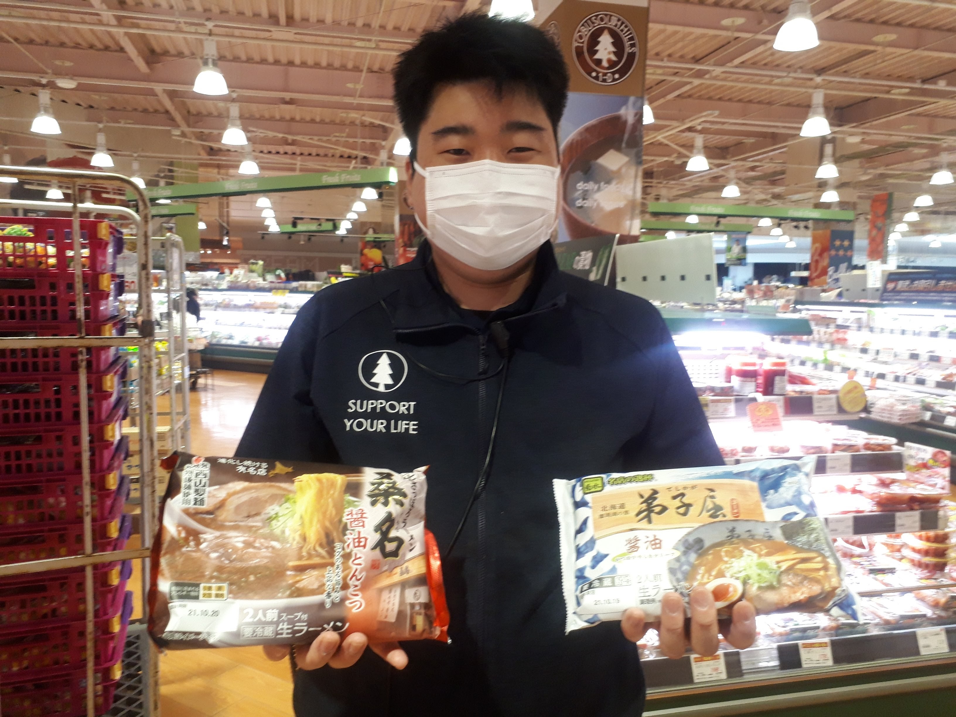 おはようございます。日配コーナーでは、有名店のラーメン、いろいろ販売しています。地元弟子屈町の弟子屈ラーメンや札幌純連など、おいしい商品あります。ぜひお買い求め下さい。