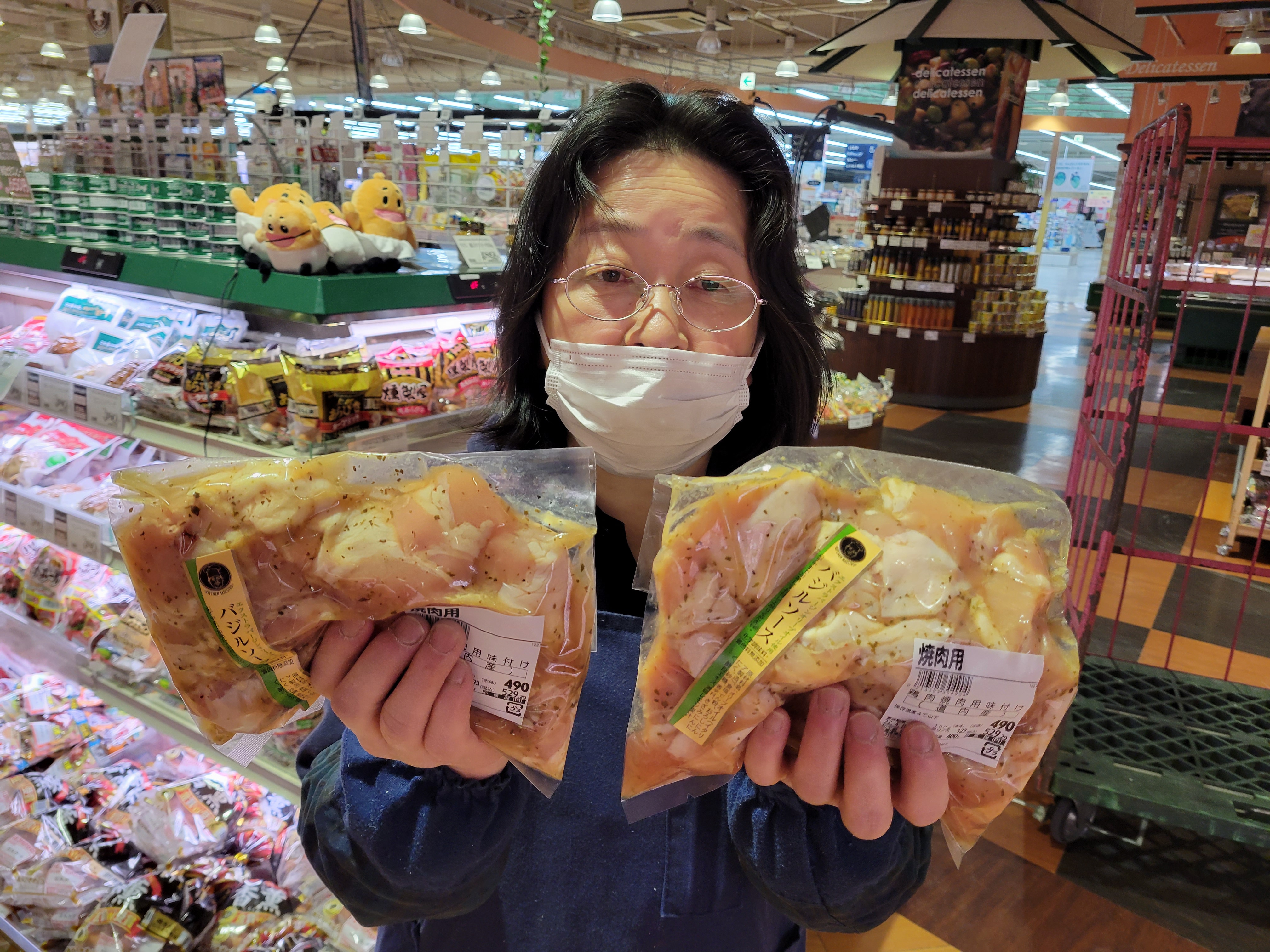 本日ミート担当、平間さんのイチオシは若鶏バジルチキンがお奨めです😄エクストラバージンオイル使用でそのままフライパンで焼くだけバジル風味がうけてます。400g490円で販売中ご利用下さいね