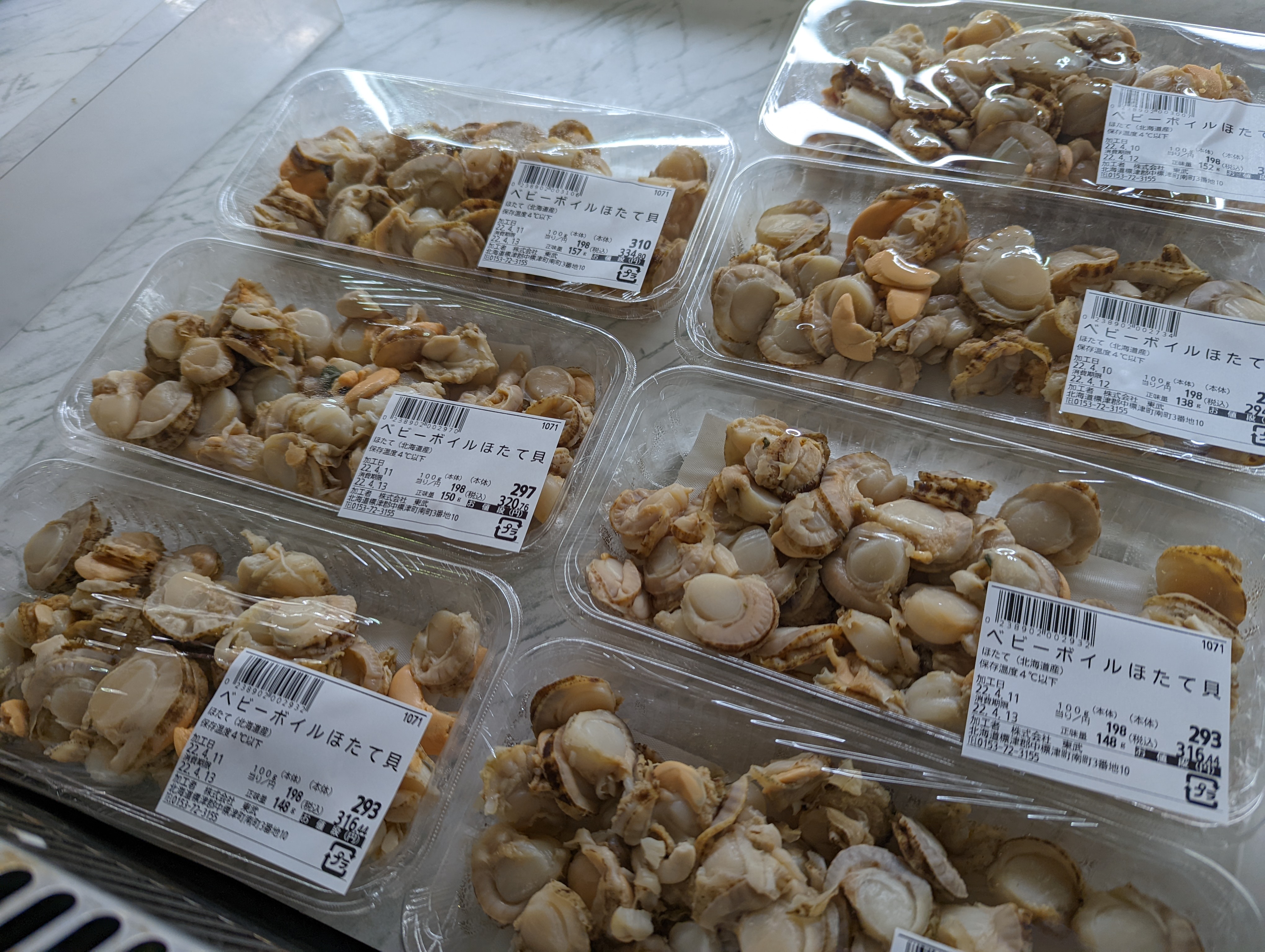 鮮魚コーナーでは新物ベビーボイルほたてを販売中!サラダにぴったり!是非ご利用くださいませ