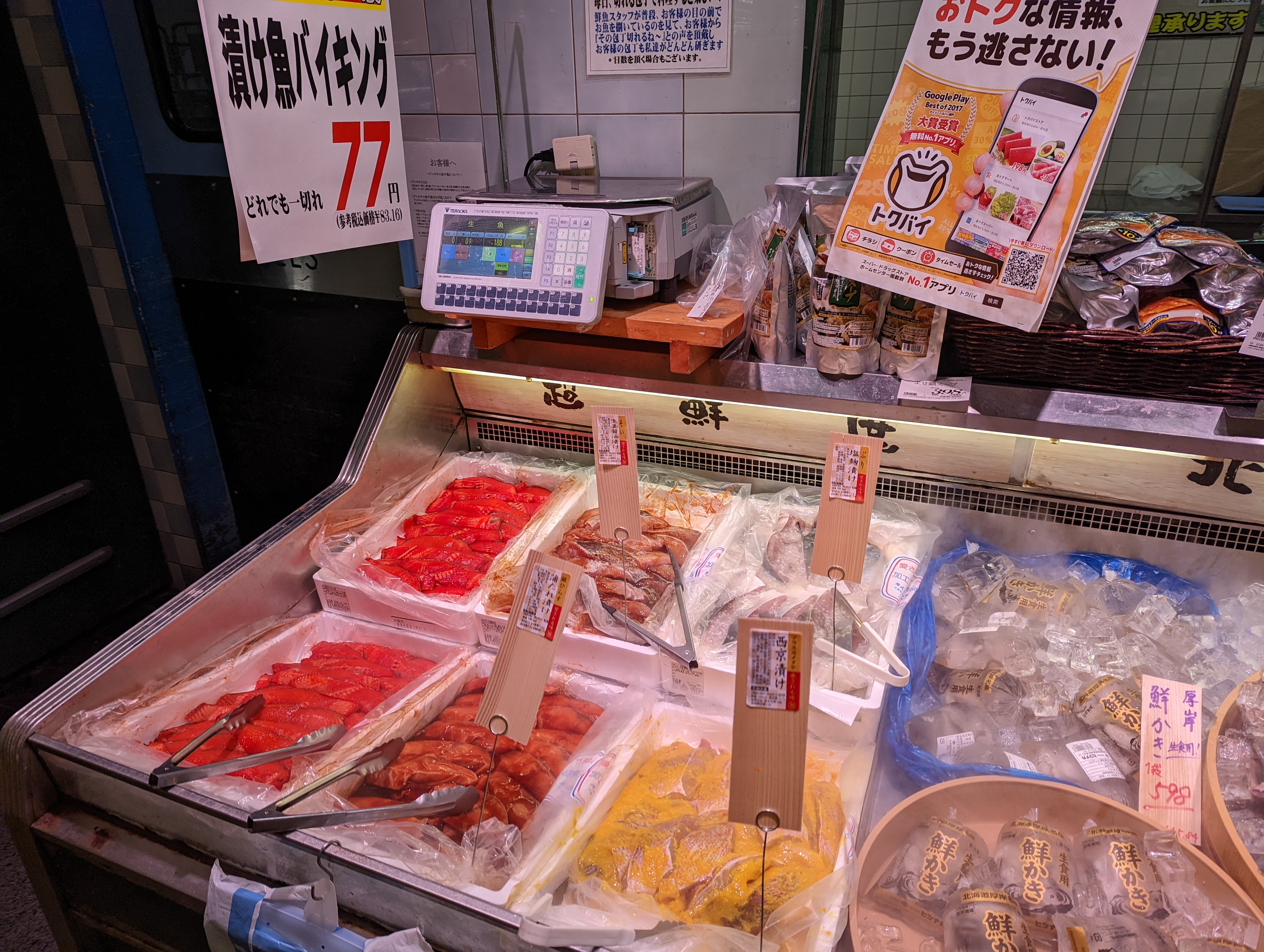 鮮魚コーナーでは均一祭開催中です!漬魚がお買い得ですので是非ご利用くださいませ