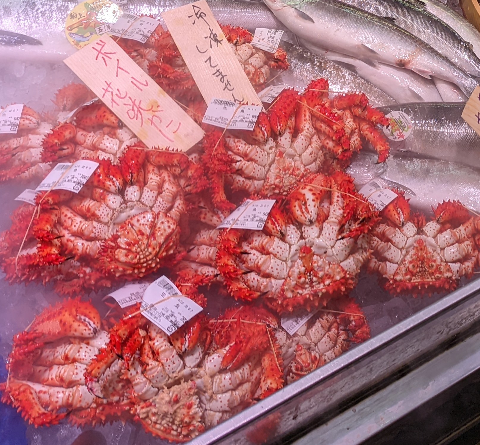 鮮魚コーナー花咲ガニがお買い得!冷凍していませんので旨さが違います!是非ご利用ください