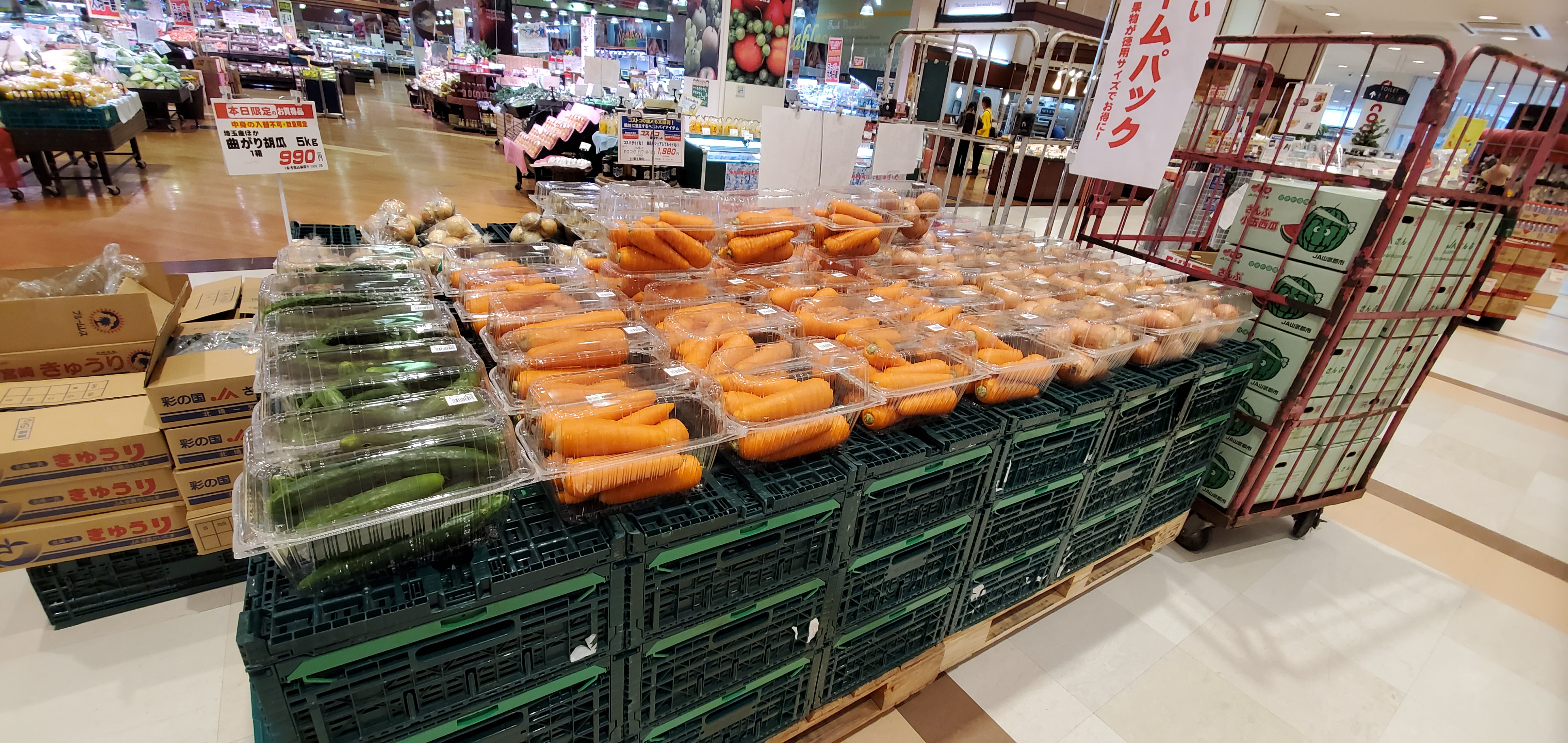 お得なボリュームパックの野菜、果物が人気です。この機械にご利用お待ちしています。(^-^)