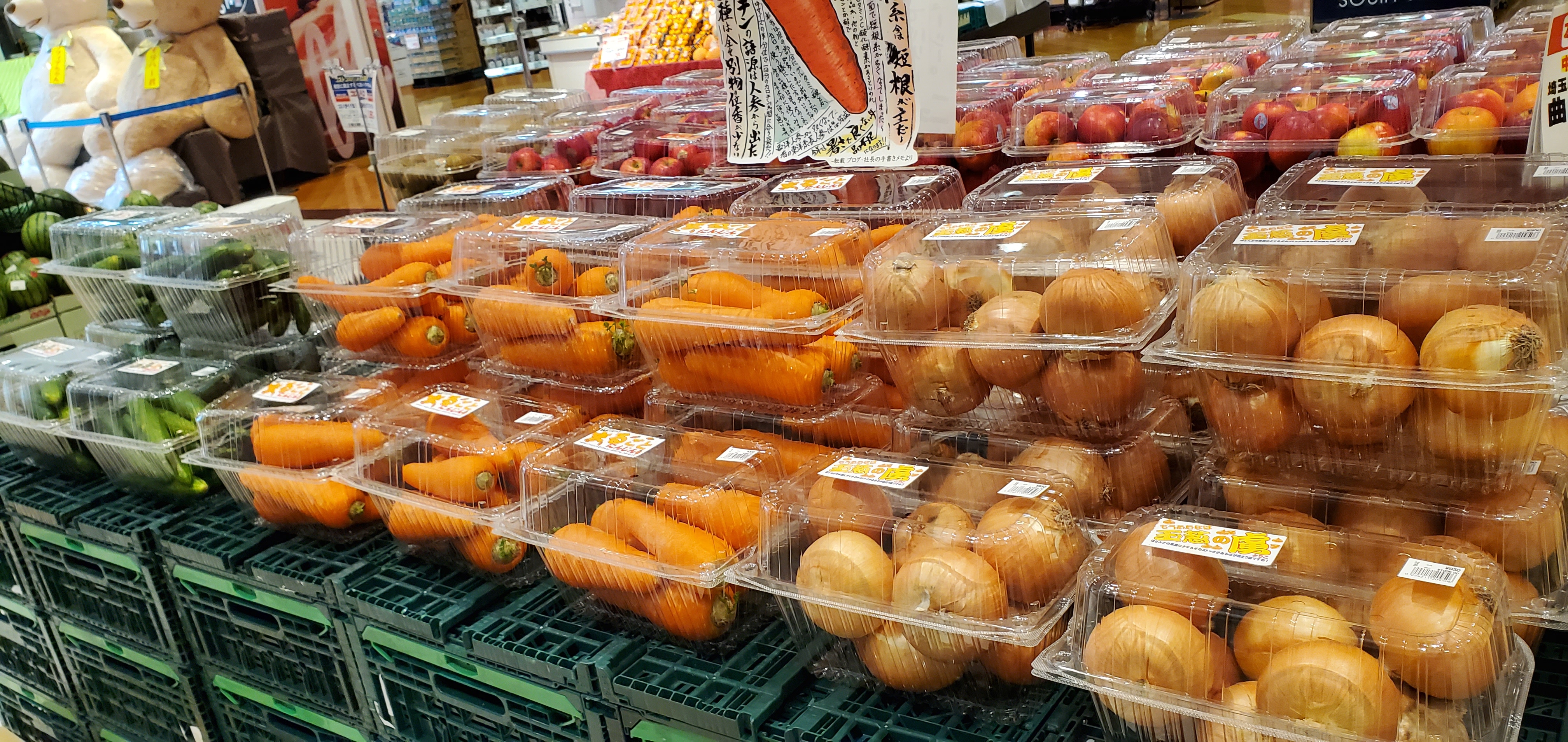 青果からオススメのボリュームパックが人気です。キュウリ、人参、タマネギ、キウイやりんごなど品揃えしています。ぜひ、ご利用お待ちしています。(^-^)
