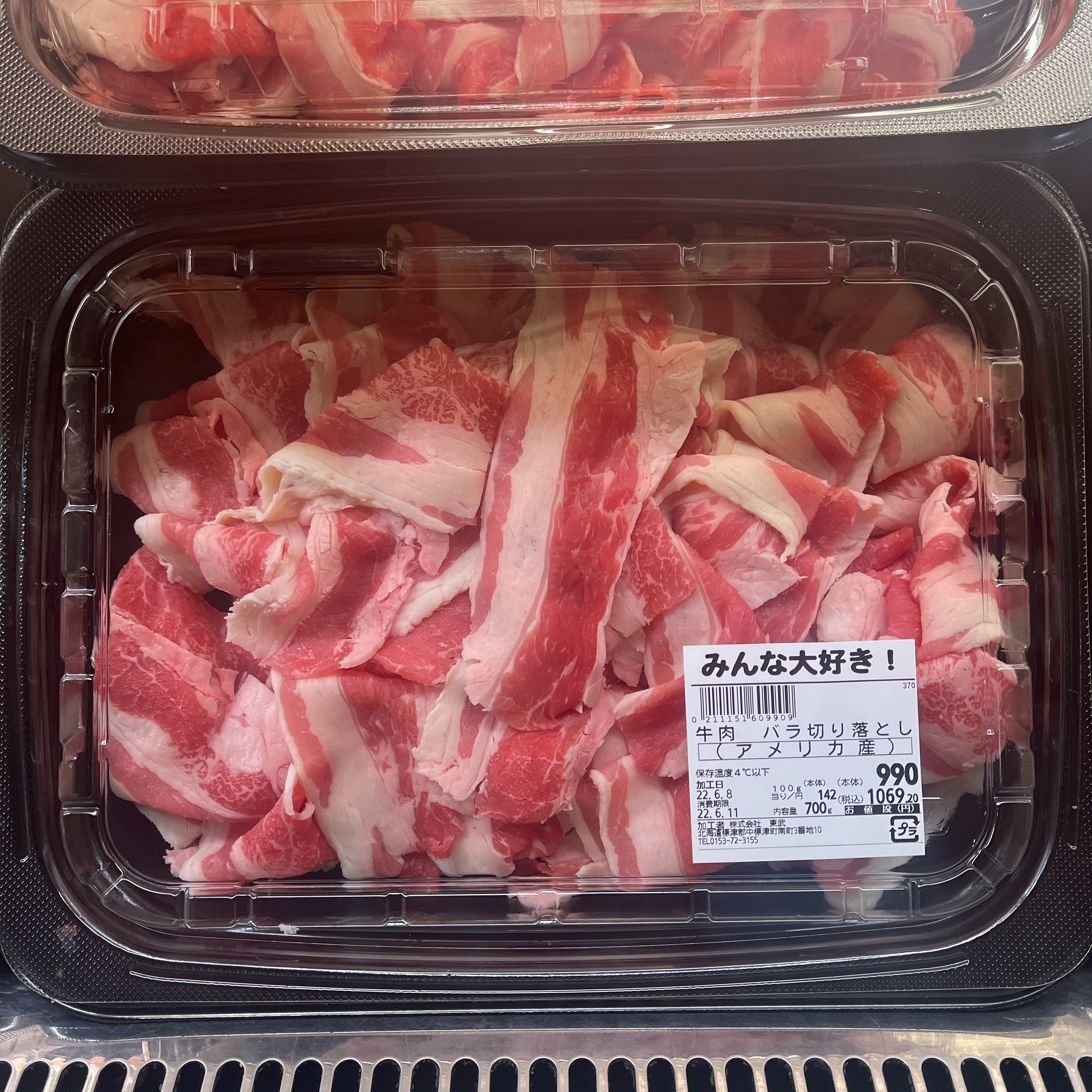 本日のミートコーナーからは、アメリカ産牛肉バラ切り落としが1パック600g990円にて販売中ですので是非ご利用下さい。