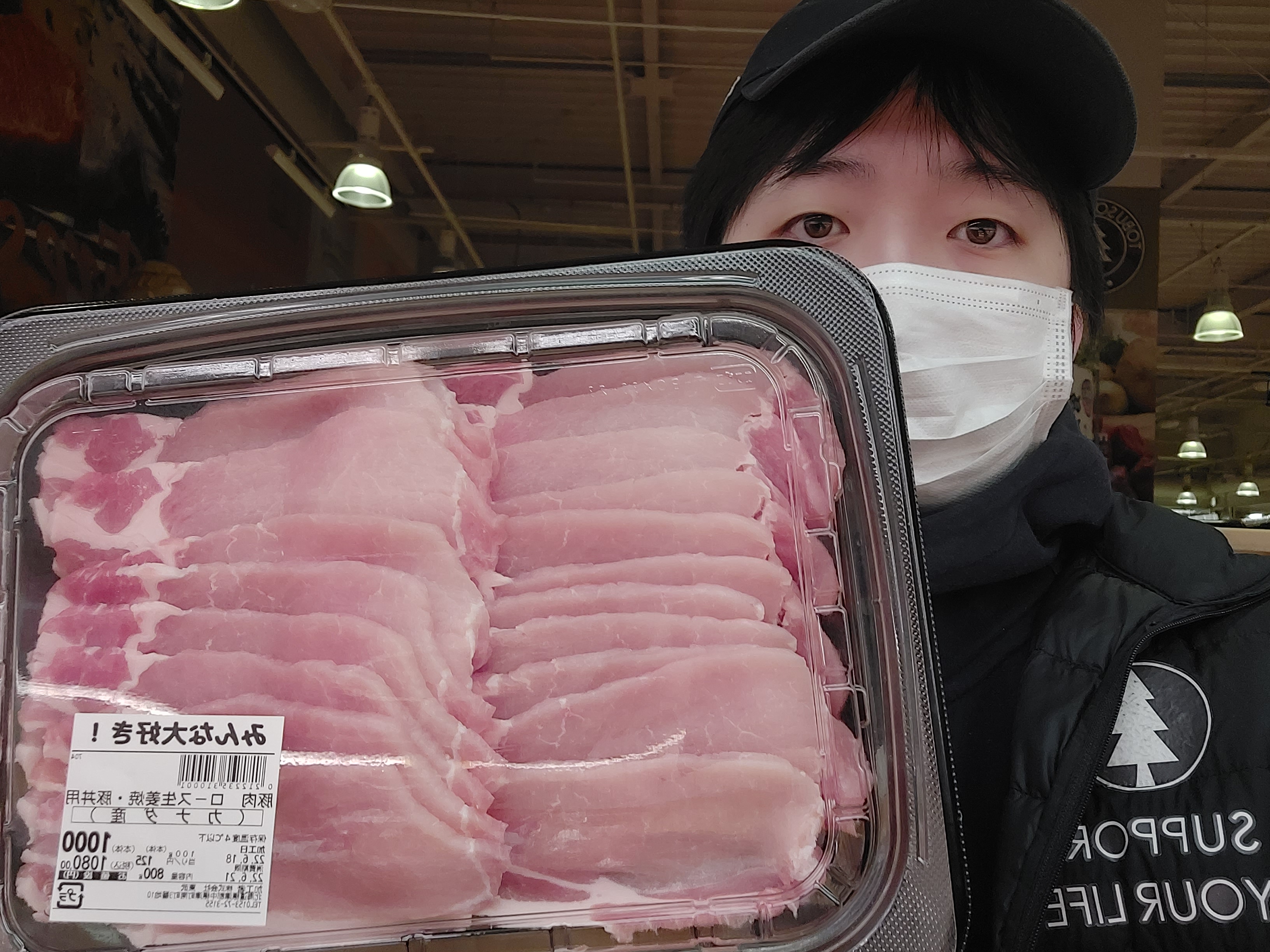 おはようございます! 本日のおすすめは豚肉ロース生姜焼き用のメガ盛りパックです! 800g入1000円です