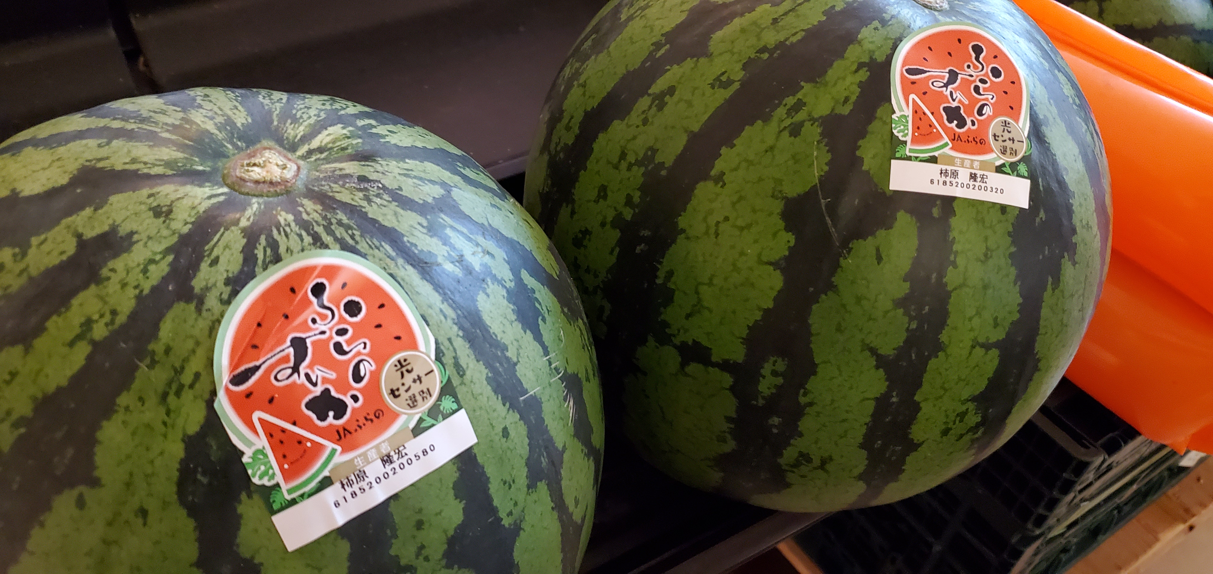 富良野スイカやらいでん、でんすけ、ゴジラのたまごなど道内産すいかが勢ぞろいしています。宮崎産の1玉10kgもある美味しいスイカもあります。ご利用お待ちしています。