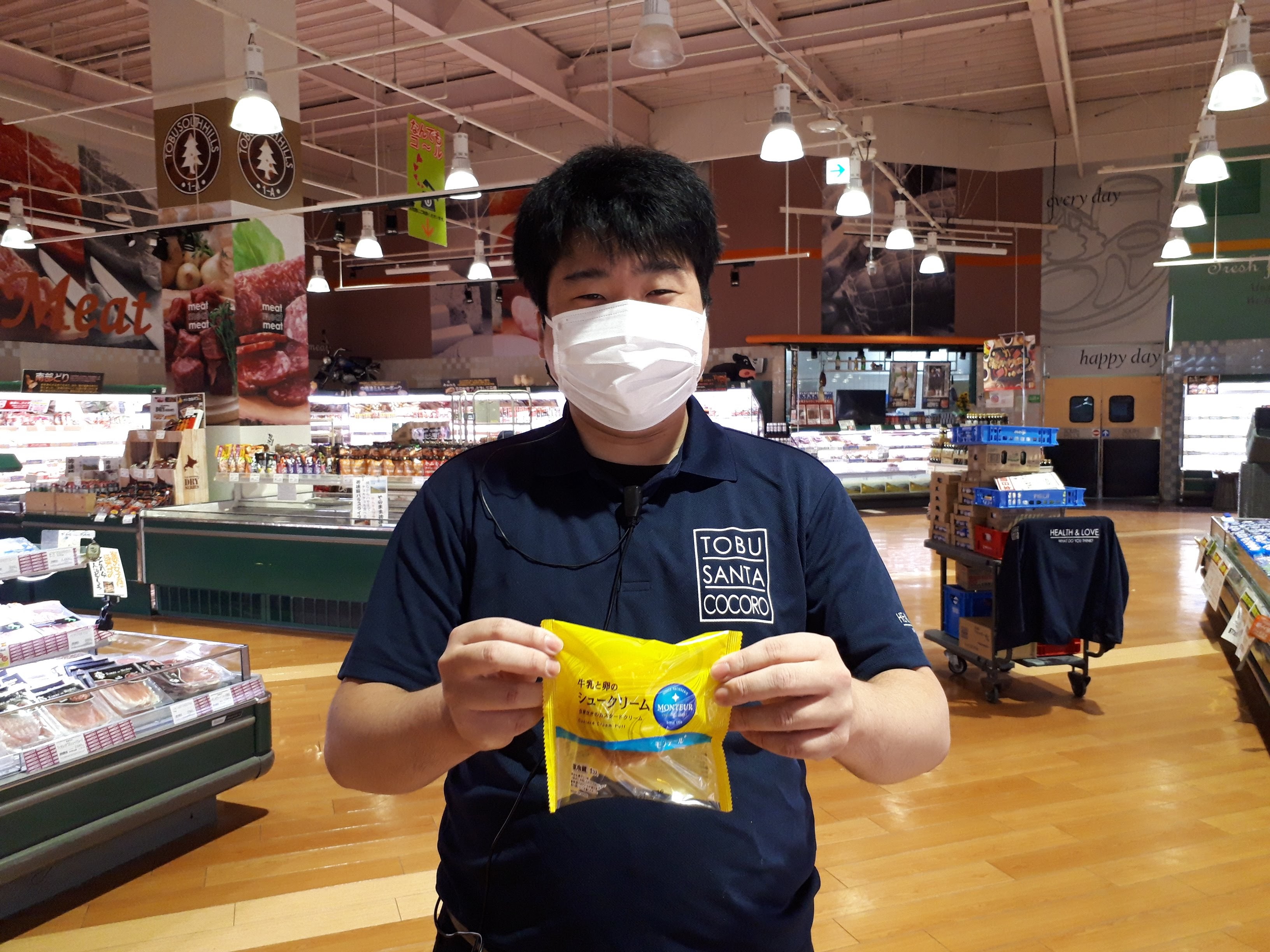 おはようございます。日配コーナーでは、均一祭として、モンテールのシュークリームがお買い得です。ぜひお買い求め下さい。