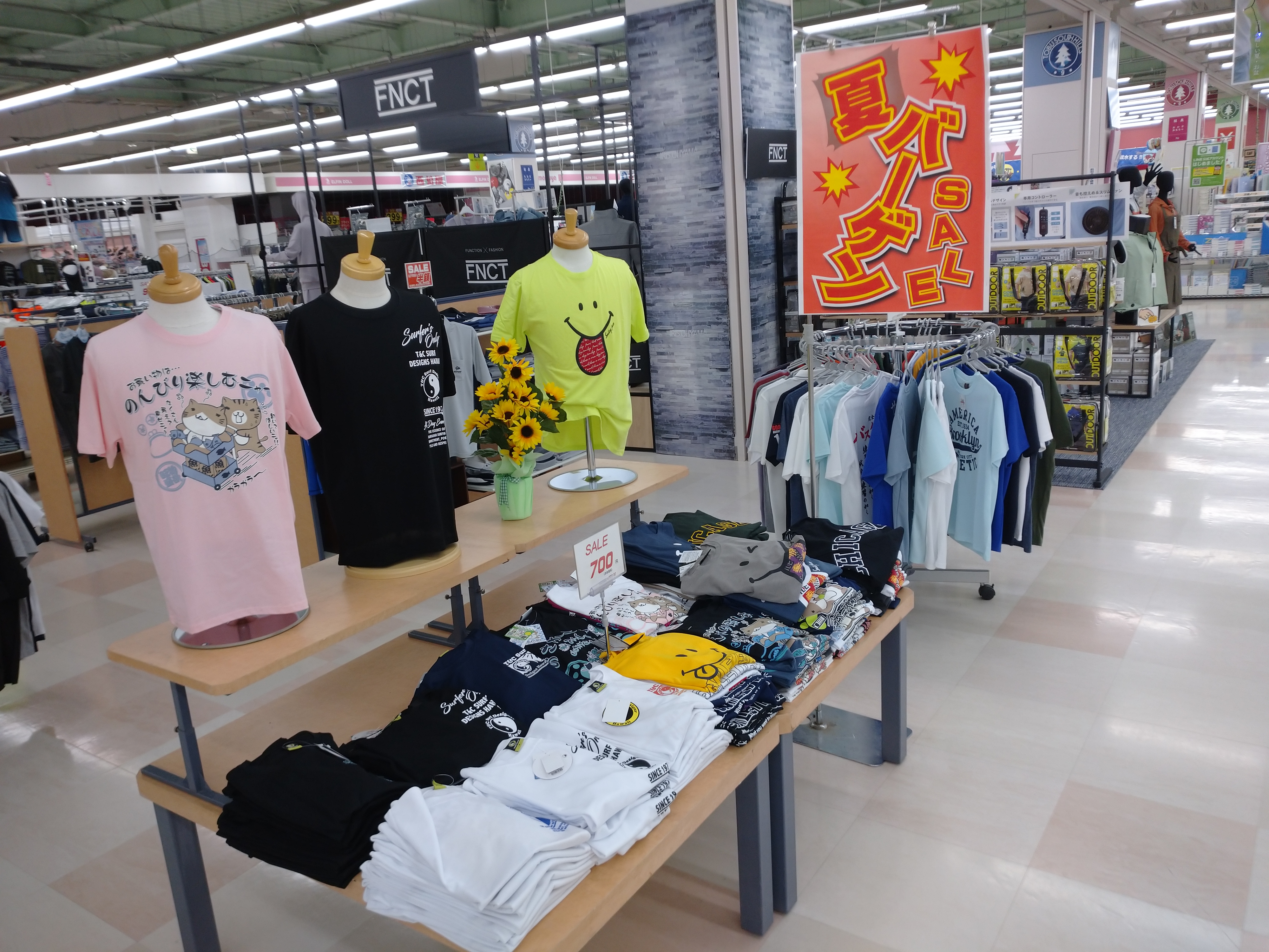 おはよーございます今夏物バーゲン実施中!Tシャツなど均一価格で大放出しています!夏物を買うなら今がチャンスです!是非 まとめ買いを!