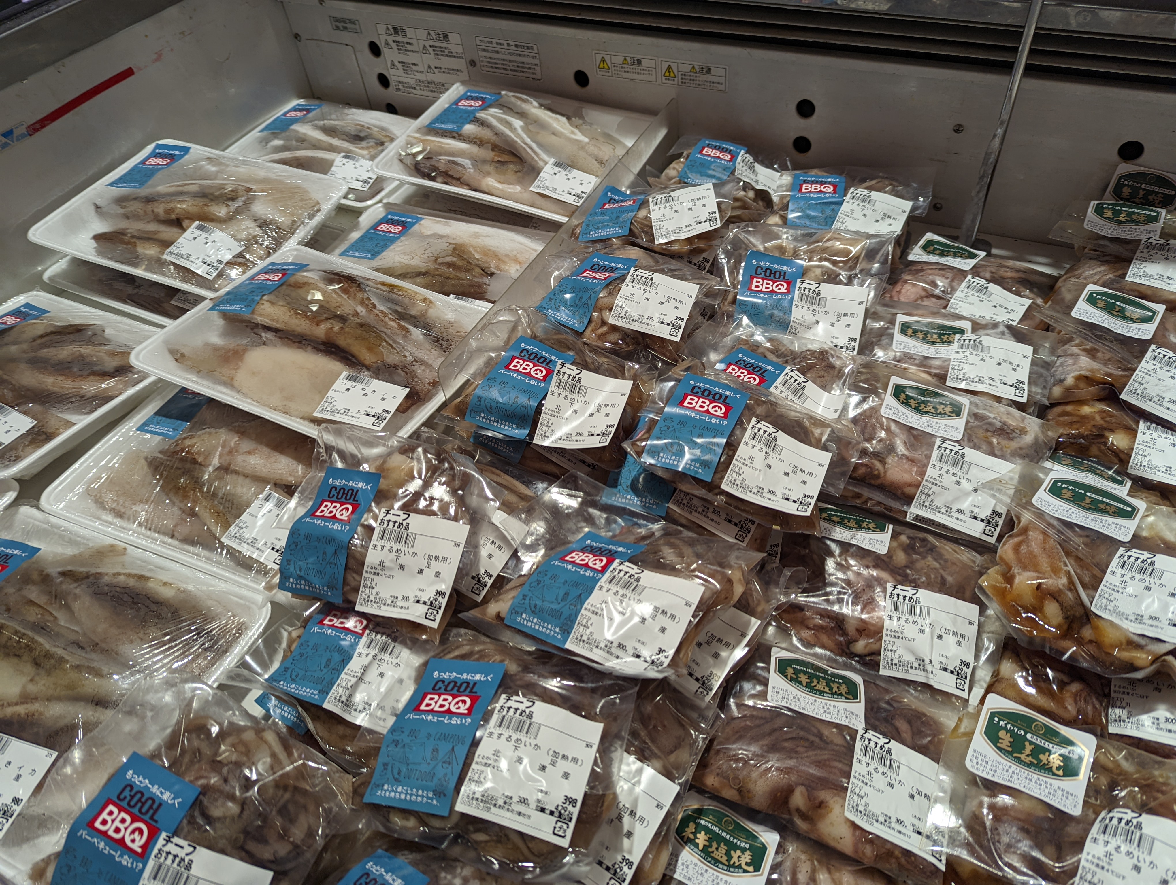 鮮魚コーナーではBBQにもってこいのイカ類を販売中!是非ご利用くださいませ